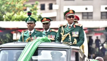 President Muhammadu Buhari grace the occasion of the Nigerian Army Trooping and Presentation of Colours parade 2023. Buhari, who arrived Eagle Square, venue of the